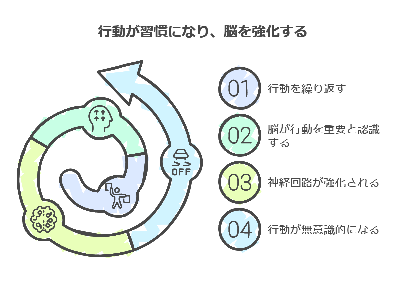 • 行動の反復が脳の神経回路を強化する