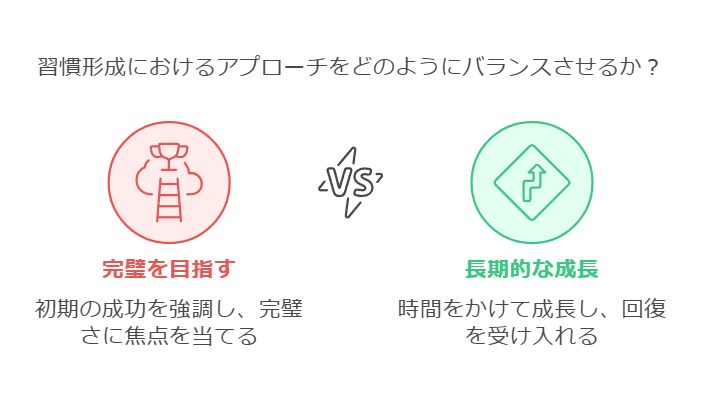 習慣化が難しい理由の一つは、「毎日完璧にやらなければいけない」というプレッシャーです。しかし、挫折を防ぐには、柔軟なルール作りが必要です。完璧を求めず、自分に合った続け方を考えることで、習慣は長続きします。